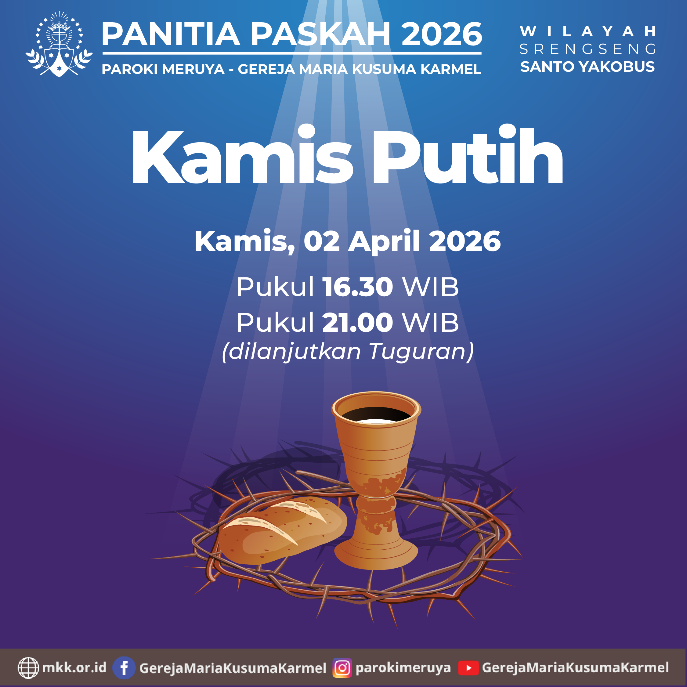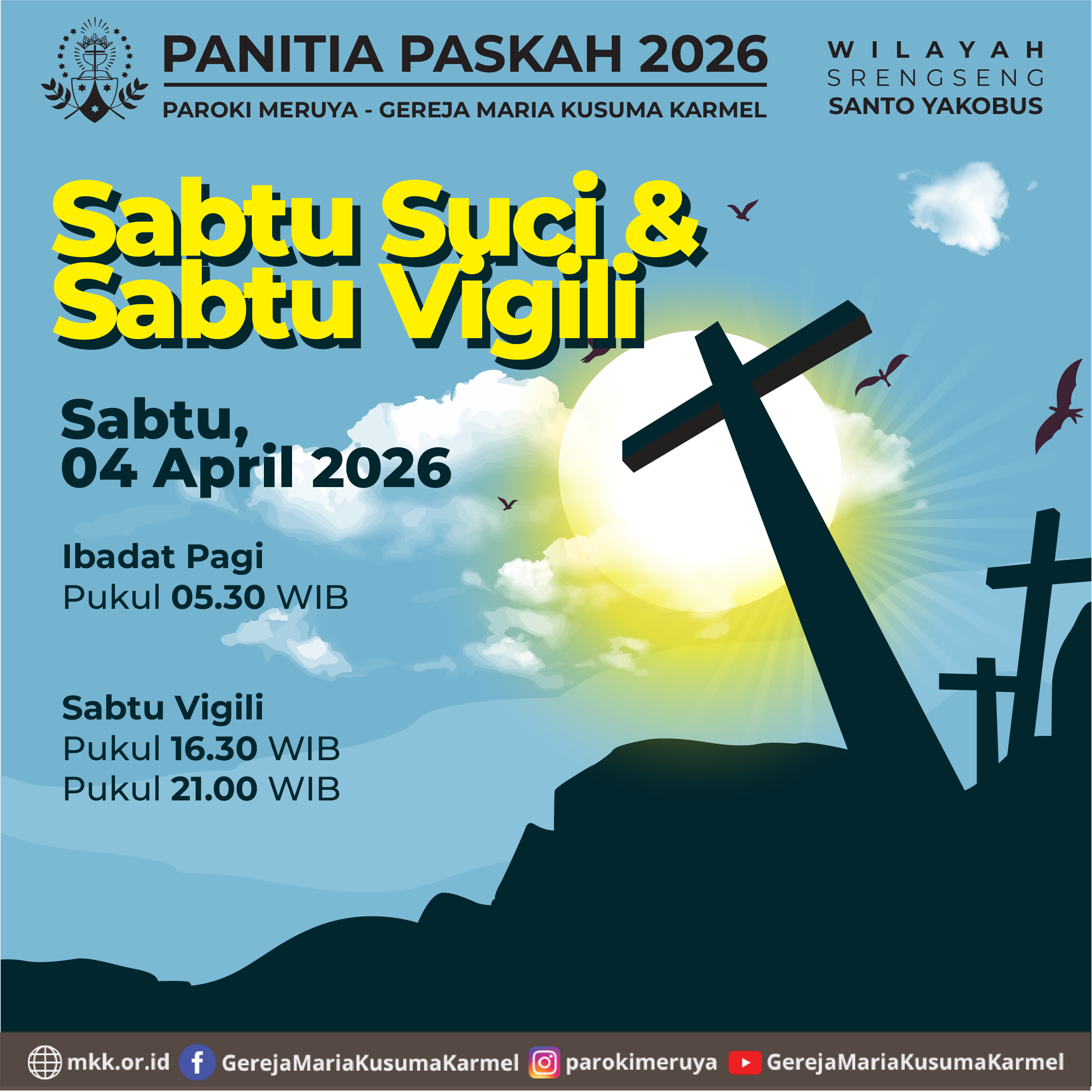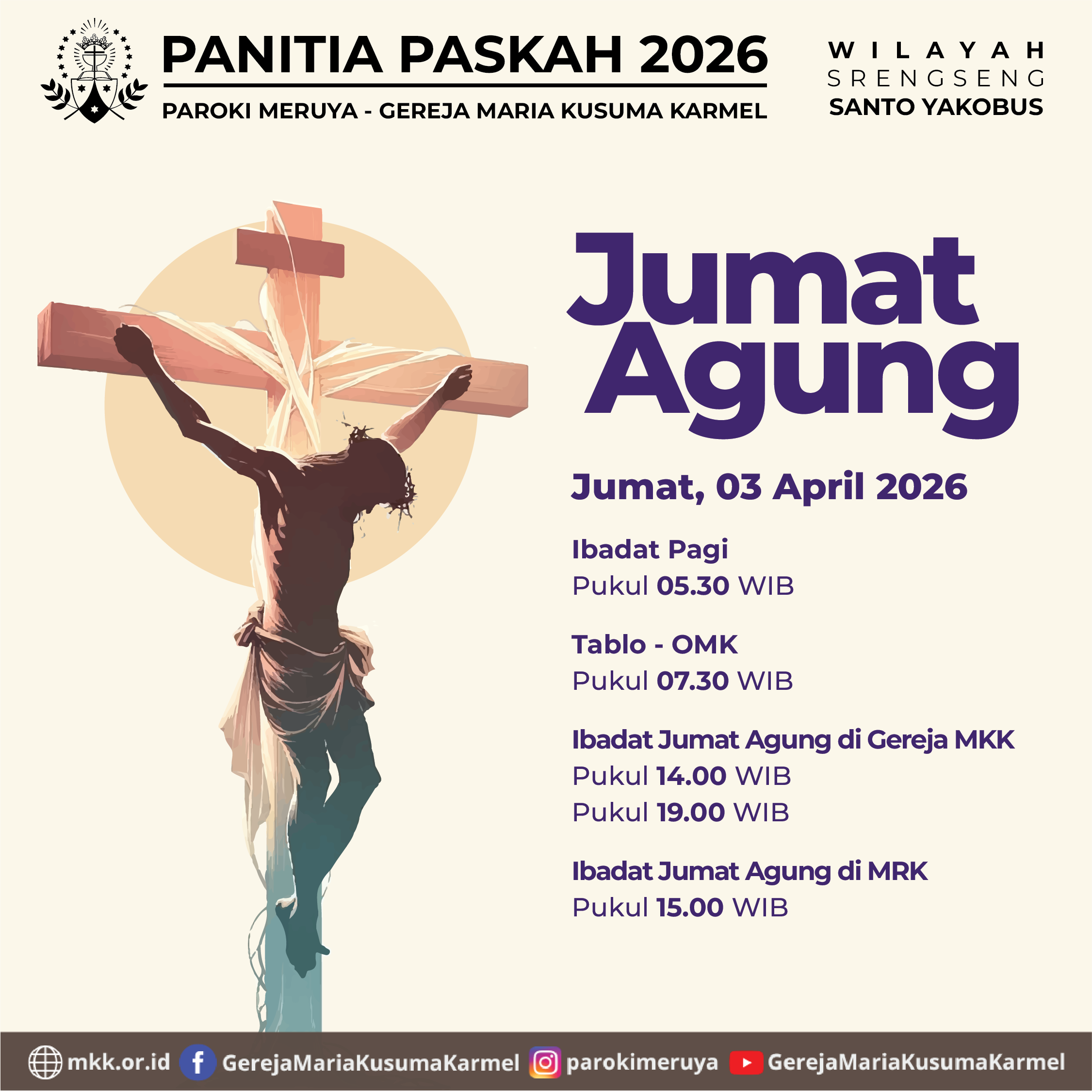 Panitia Paskah 2026 Paroki MKK mengundang seluruh umat untuk mengikuti Jalan Salib yang dilanjutkan dengan Misa sebagai persiapan menyambut Paskah. Mari kita ambil waktu untuk hening, berdoa, dan berjalan bersama Tuhan dalam suasana penuh iman.