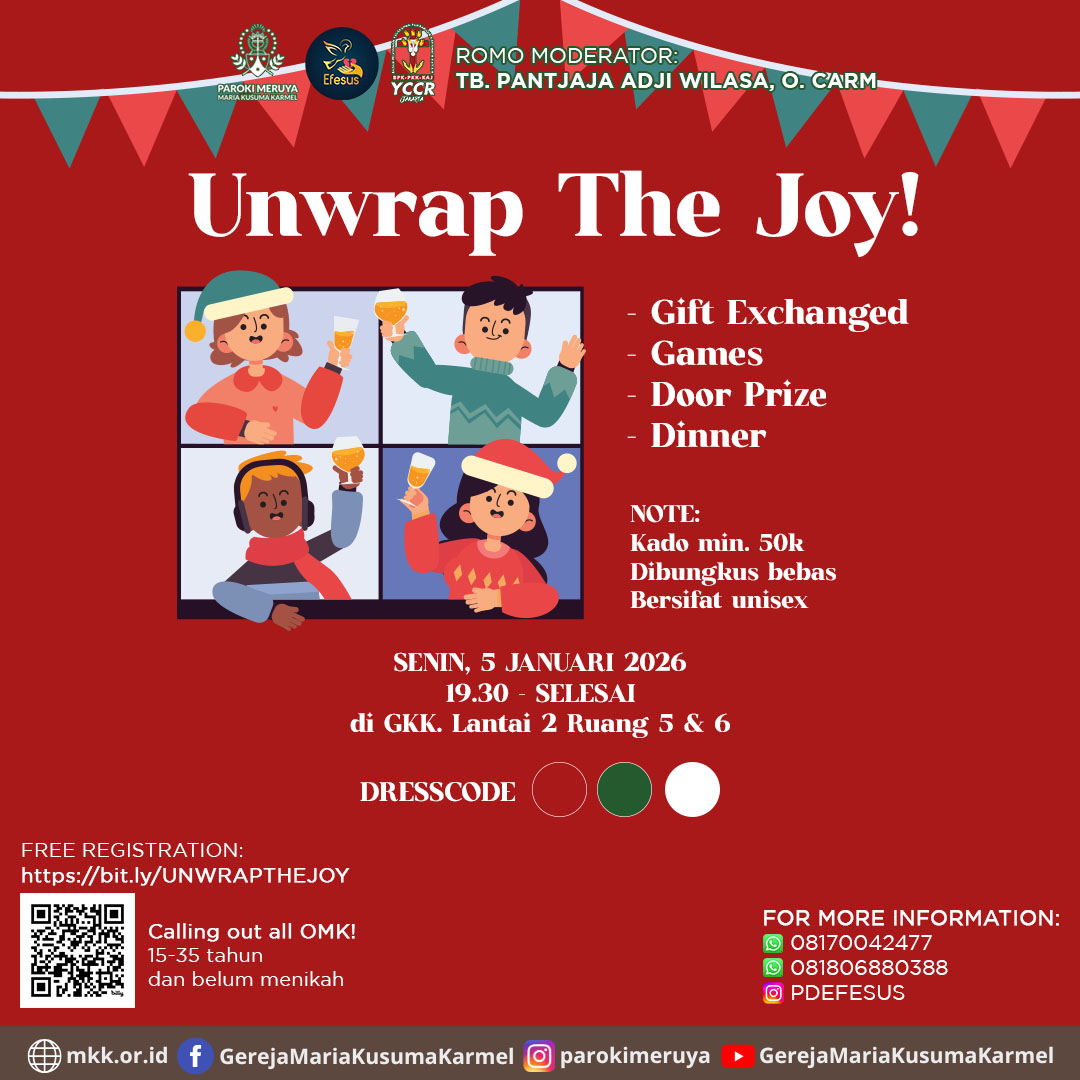 Paroki Meruya - Gereja Maria Kusuma Karmel, mengundang umat terkasih untuk berziarah ke Porta Sancta / Pintu Suci Gereja Maria Kusuma Karmel - Dekenat Barat 2. Untuk Pendaftaran Rencana kunjungan jumlah besar dapat menghubungi https://bit.ly/ziarahportasanctaMKK25