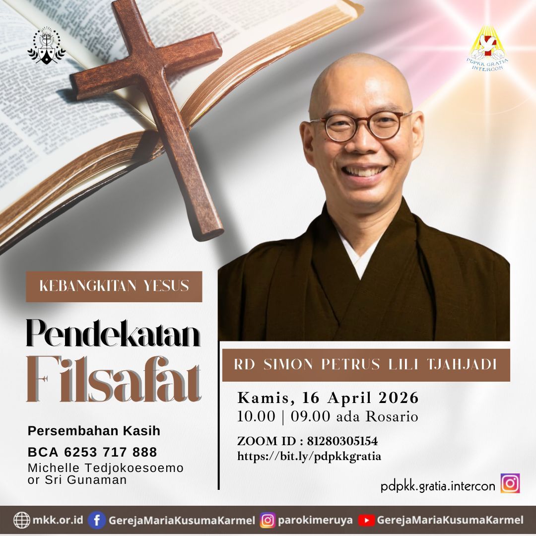 PDPKK Gratia Intercon kembali mengundang untuk berkumpul mendengarkan Firman Tuhan dengan Tema: Kebagkitan Yesus : Pendekatan Filsafat. Renungan dibawakan oleh : Rm. Simon Petrus Lili Tjahjadi, Pr.