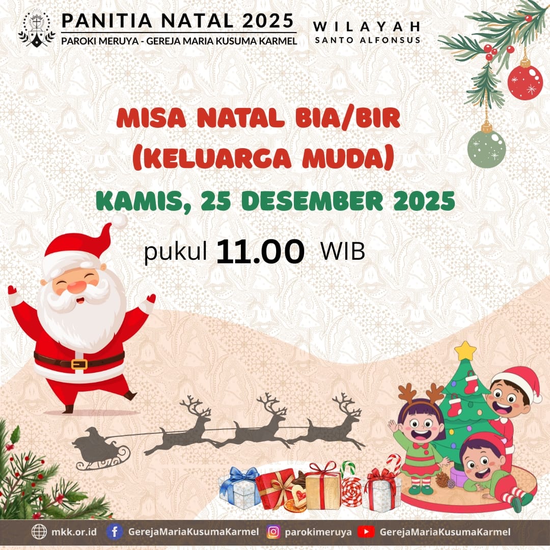 Syallom, berikut ini jadwal Misa Hari Raya Natal - Misa BIA/BIR/Keluarga Muda tahun 2025, mohon perhatian umat untuk jadwal tersebut. Terimakasih