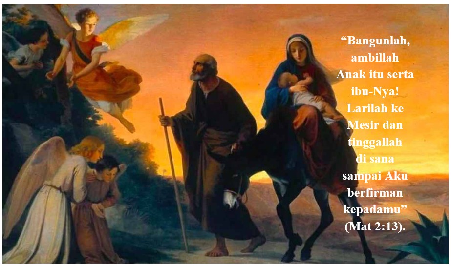 Kata malaikat itu kepada Yusuf dalam mimpinya, “Larilah ke Mesir dan tinggallah di sana sampai Aku berfirman kepadamu, karena Herodes akan mencari Anak itu untuk membunuh Dia” (Mat 2:13).