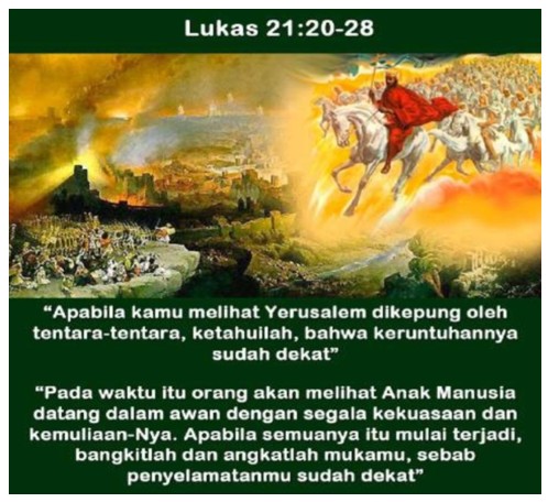 Kendati akhir zaman digambarkan sebagai suatu peristiwa yang mengerikan kita tidak perlu takut. Sebagai seorang murid Tuhan Yesus, kita seharusnya bergembira karena akhir zaman merupakan hari penyelamatan kita. Yesus bersabda,” Apabila semuanya itu mulai terjadi, bangkitlah dan angkatlah mukamu, sebab penyelamatanmu sudah dekat”(Luk 21:28).