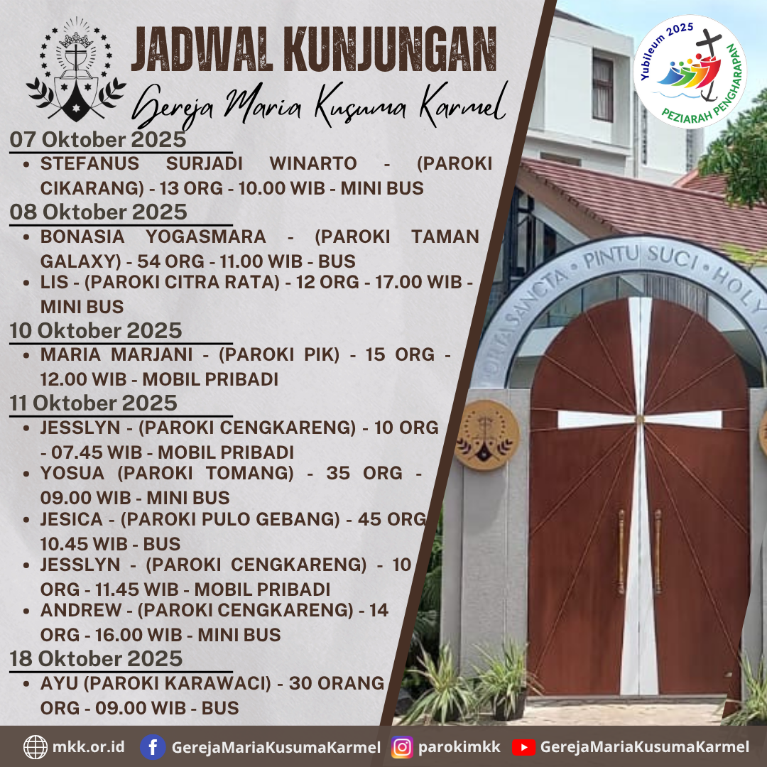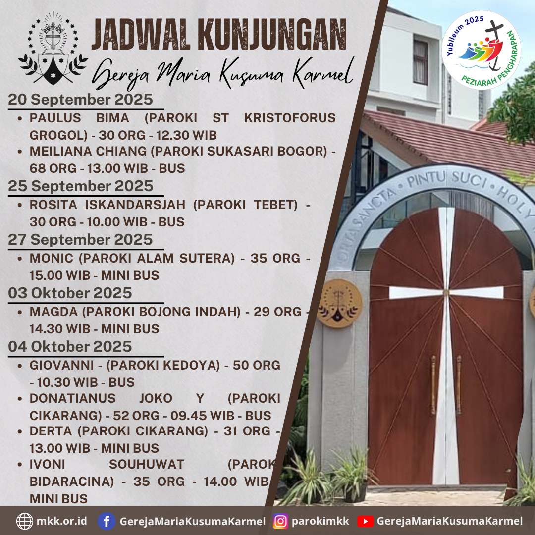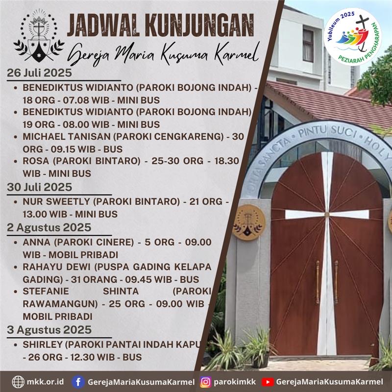 - Peziarah harap mengisi buku tamu pada tautan QR yang terdapat di Taman Doa Maria Kusuma Karmel, atau melalui tautan dibawah ini: