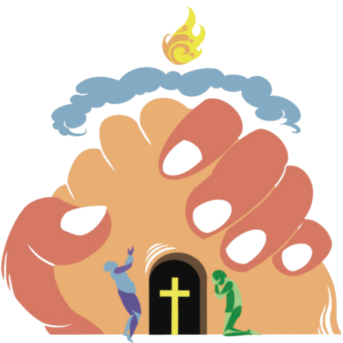 - Gunung berbentuk dua tangan yang saling menggenggam, melambangkan relasi. Ini sesuai dengan empat tema pokok permenungan, yaitu a) pembaruan relasi dengan diri sendiri; b) pembaruan relasi dengan sesama; c) pembaruan relasi dalam keluarga; d) pembaruan relasi dengan Allah. Dua tangan juga melambangkan dua figur nabi sebagai sumber inspirasi dalam BKSN 2025, yakni Zakharia dan Maleakhi.