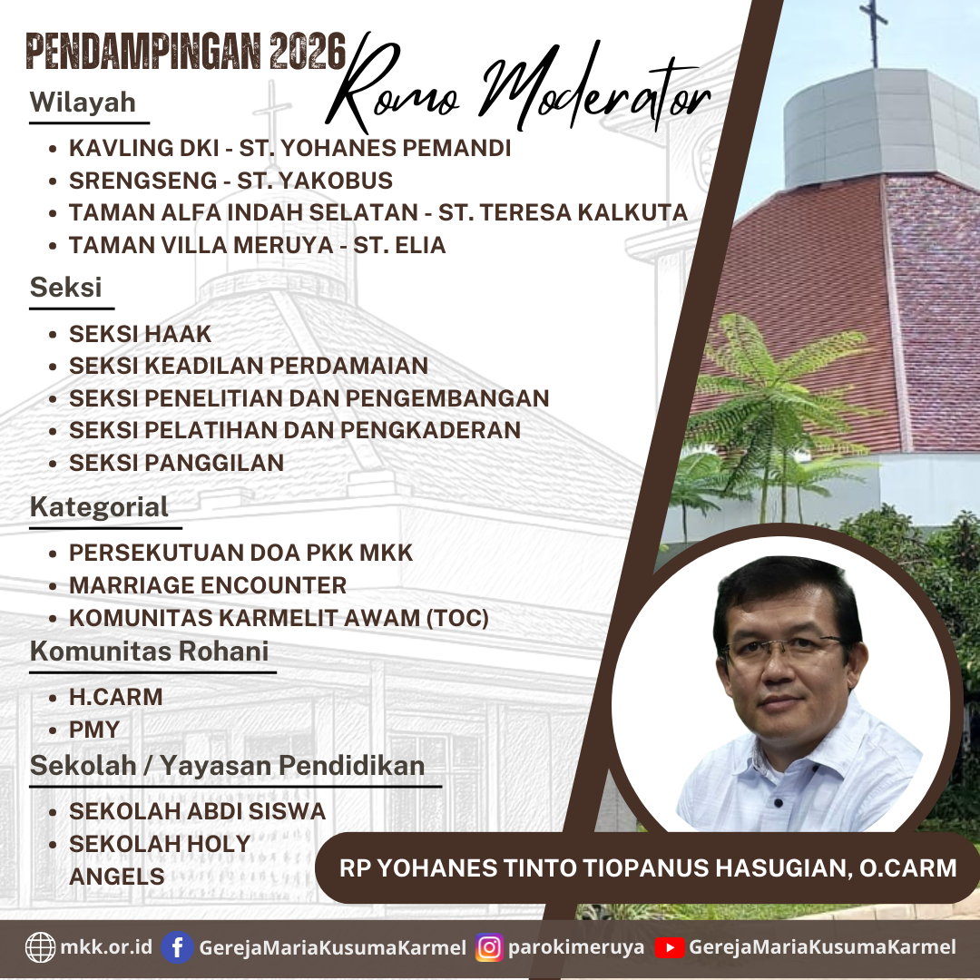 Maka berikut ini kami sampaikan perubahan pendampingan Tugas Pendampingan Romo Moderator, yang merupakan bagian lampiran resmi dari Pendoman Administrasi Sekretariat Paroki.