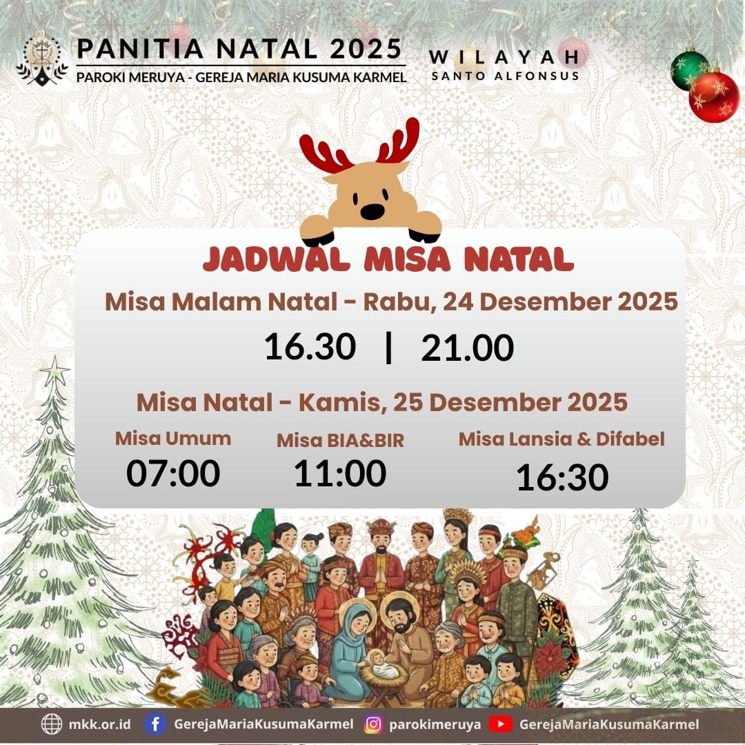 Syallom, berikut ini kami sampaikan informasi jadwal Perayaan Natal 2025, mohon perhatian umat. Terimakasih