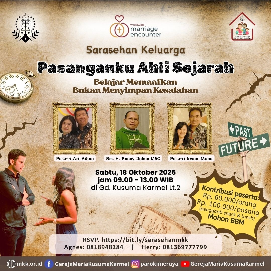 Seksi Kerasulan Keluarga & Marriage Encounter MKK mengajak Pasutri untuk belajar memaafkan & mulai menulis kisah baru yang manis dan penuh sukacita di acara