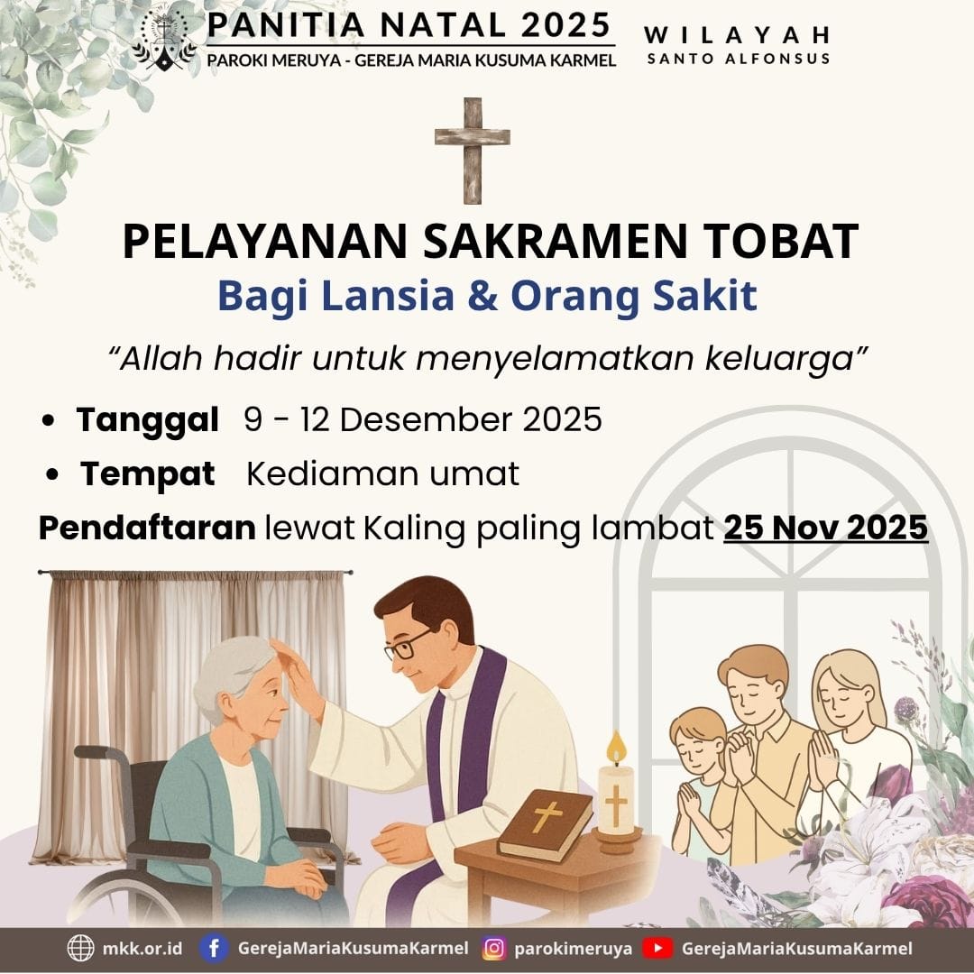 Syallom, berikut ini adalah jadwal pelayanan sakramen tobat menjelang Natal 2025 khusus Lansia dan Orang sakit, Terimakasih