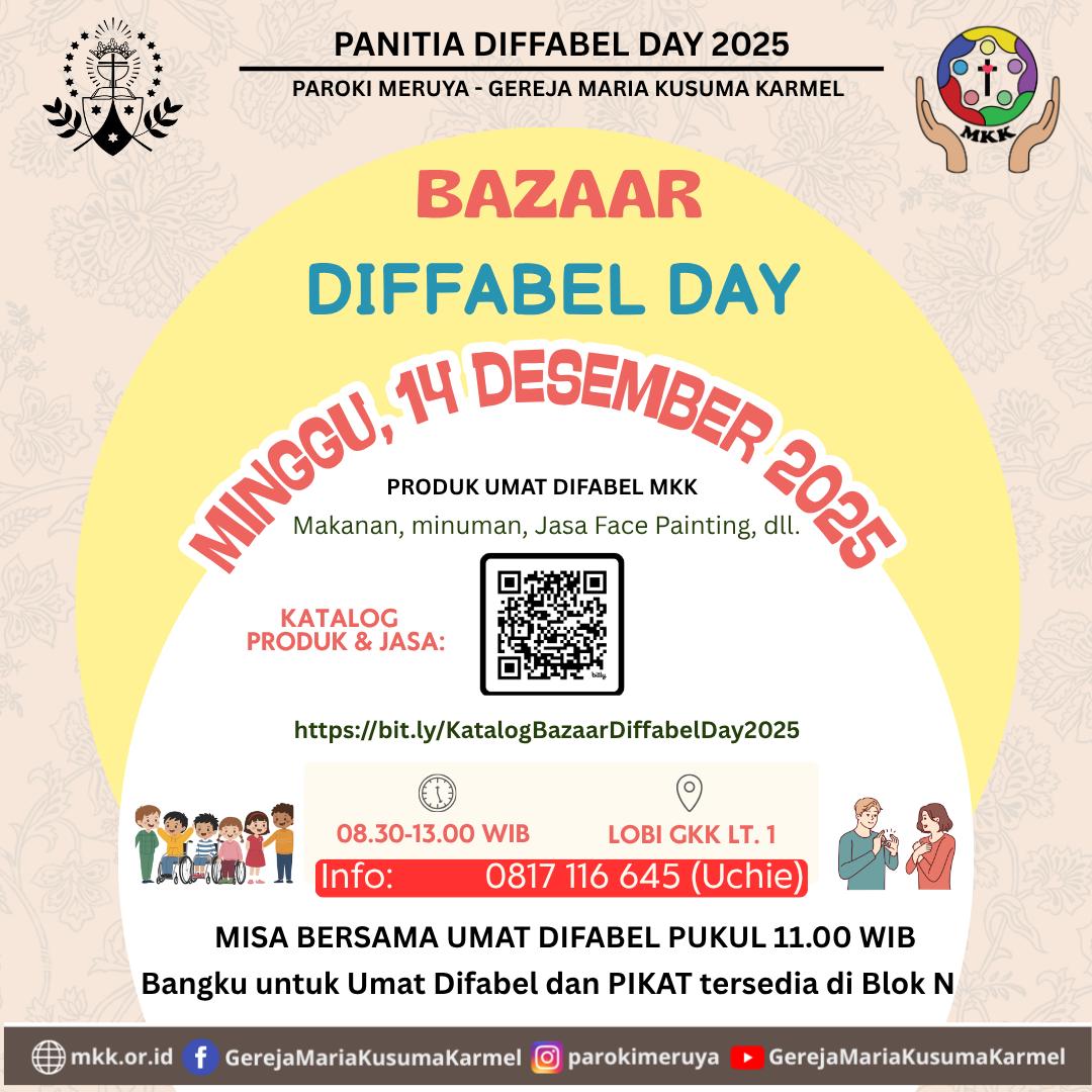 Panitia Difabel Day 2025, akan mengadakan Bazar Difabel Day, mohon partisipasi umat untuk mendukung karya para umat difabel paroki Meruya. Terimakasih.