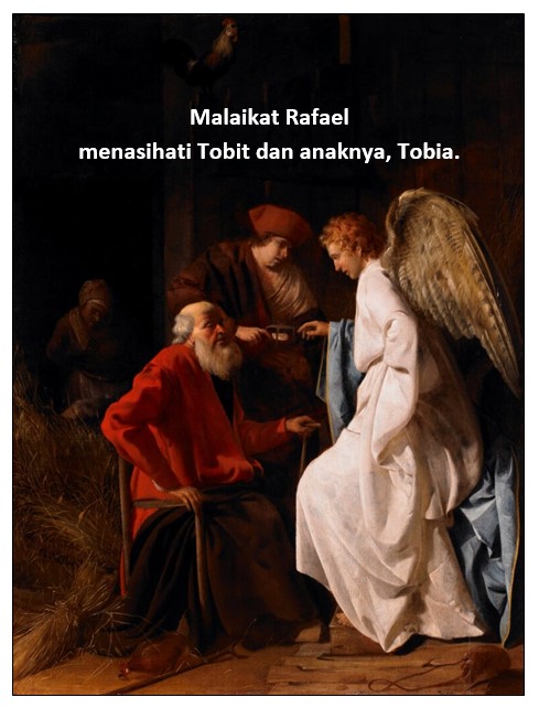 Mengenai memberi sedekah, Malaikat Rafael menasihati Tobit dan anaknya Tobia demikian, “Lebih baiklah doa benar dan sedekah jujur daripada kekayaan yang lalim. Memang sedekah melepaskan dari maut dan menghapus setiap dosa. Orang yang melakukan sedekah akan menjadi puas dengan umurnya” (Tob 12:8-9). Rafael menunjukkan upah dari sedekah yakni dilepaskan dari maut dan dihapus dari setiap dosa.