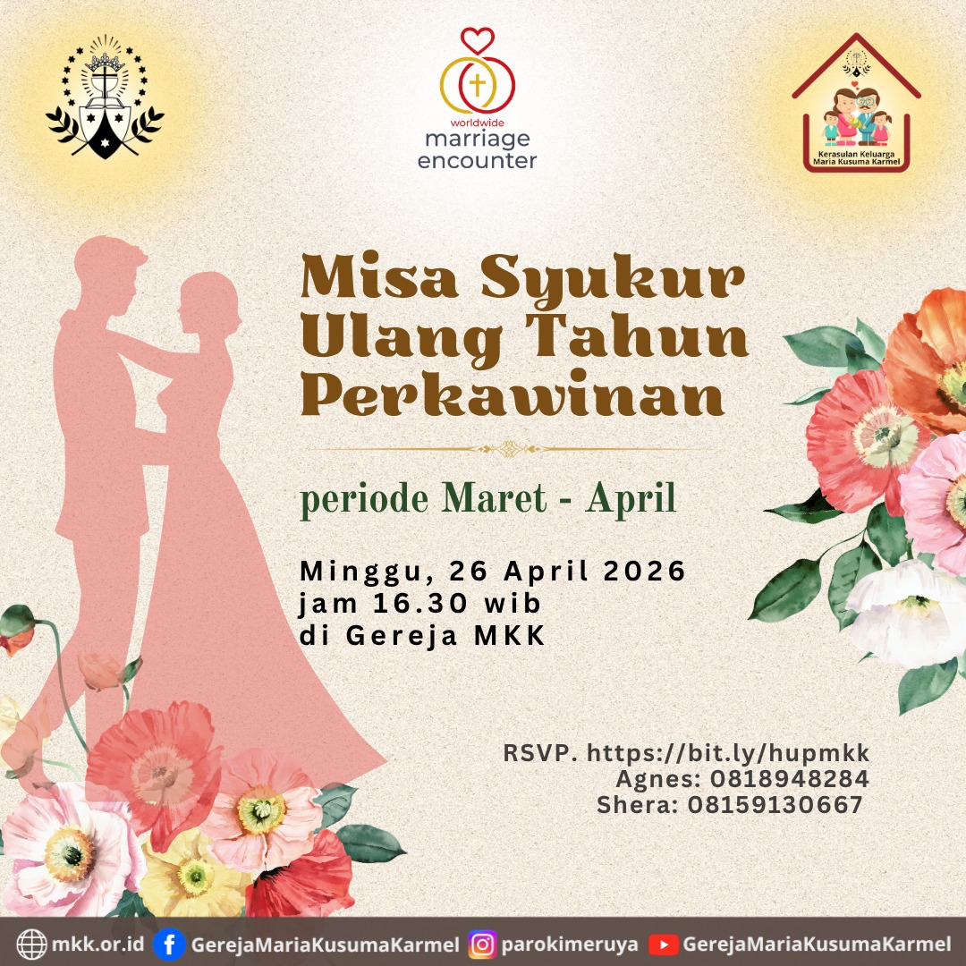 Dengan penuh sukacita, kami mengundang Pasutri & keluarga untuk bersama-sama mensyukuri rahmat dan penyertaan Tuhan dalam perjalanan hidup berkeluarga, dalam: